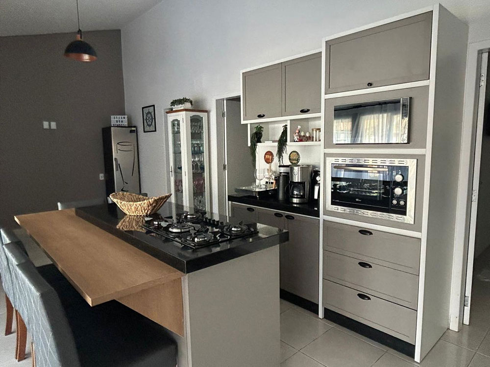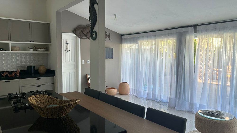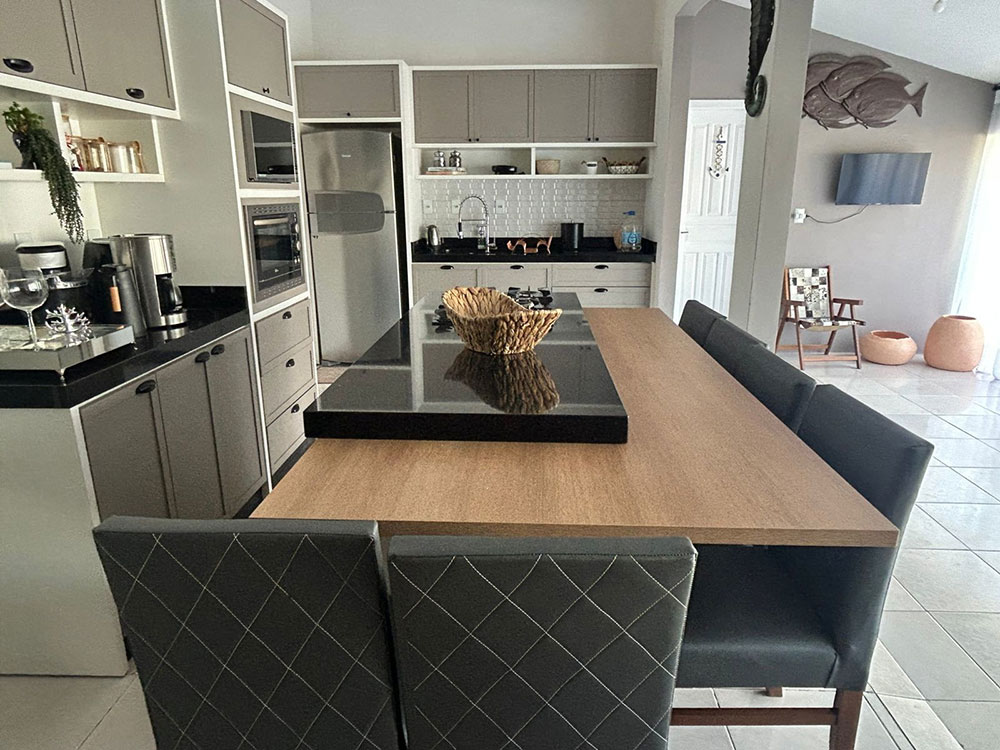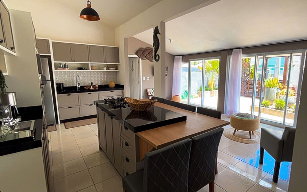 - Cozinha completa (com geladeira, air fryer, cervejeira, microondas, forno embutido, liquidificador, batedeira, sanduicheira e cafeteira)