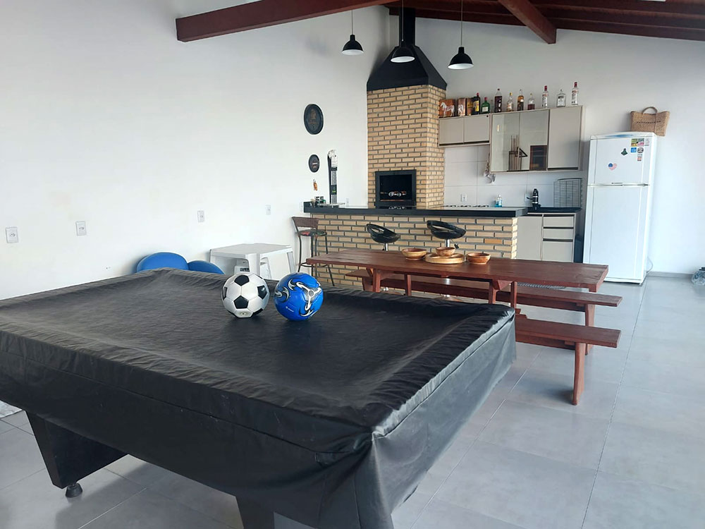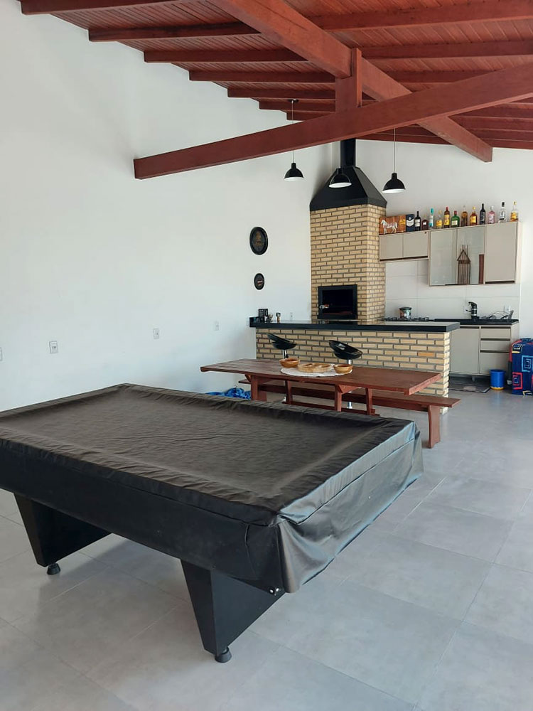 - Ampla área de festas (com mesa de sinuca e área gourmet com churrasqueira)