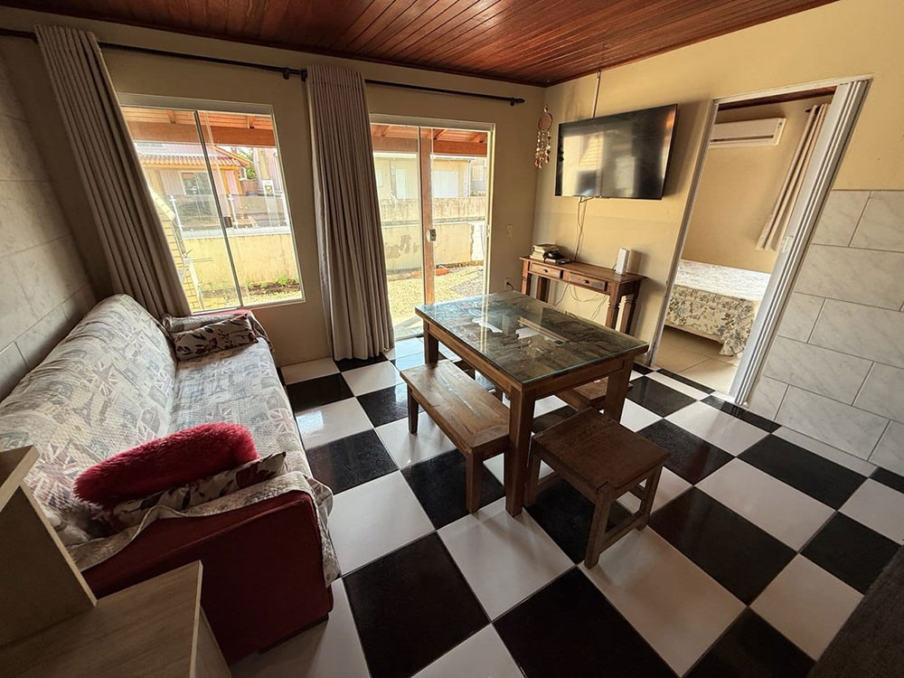 150 metros da praia. As casas contam com 01 e 03 dormitórios, climatizadas, cozinha completa, internet Wi-Fi e acomodações para 04 e 08 pessoas.