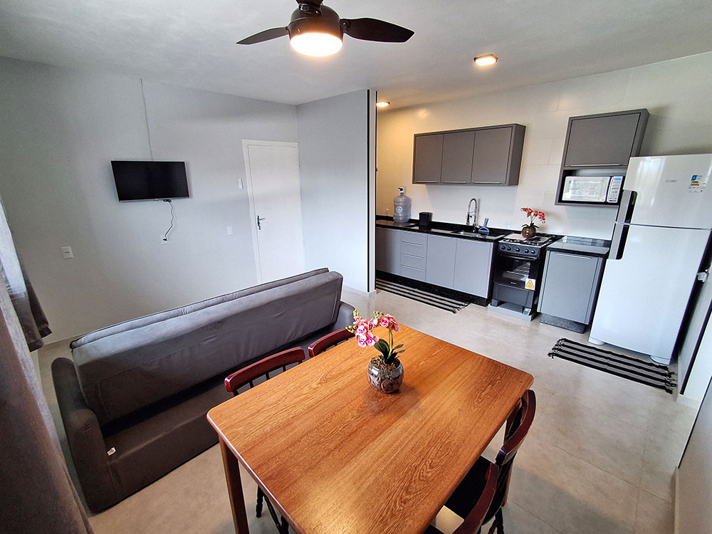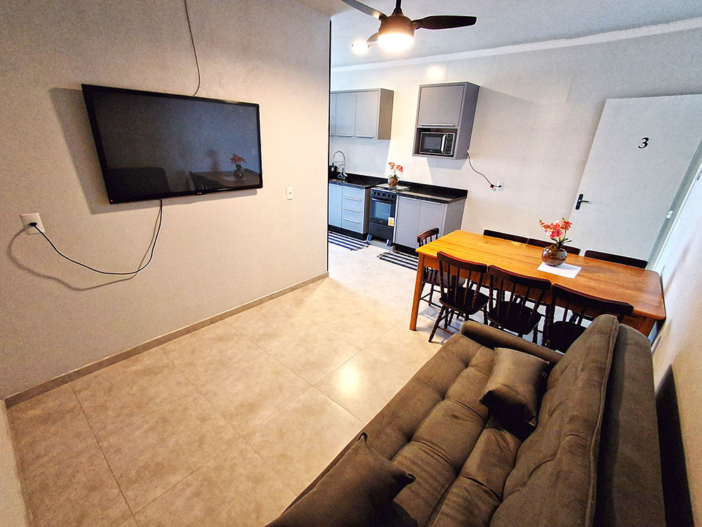 Dispomos de apartamentos com 01 e 02 dormitórios (com ar condicionado), cozinha completa, internet Wi-Fi e churrasqueira.